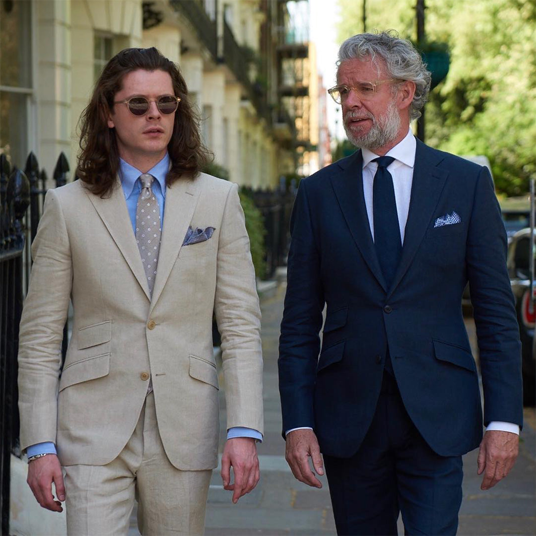 Linen can be tailored into classic, formal styles, such as those worn by Elliot and David, and also into unstructured, unlined garments to offer a more casual look and feel.