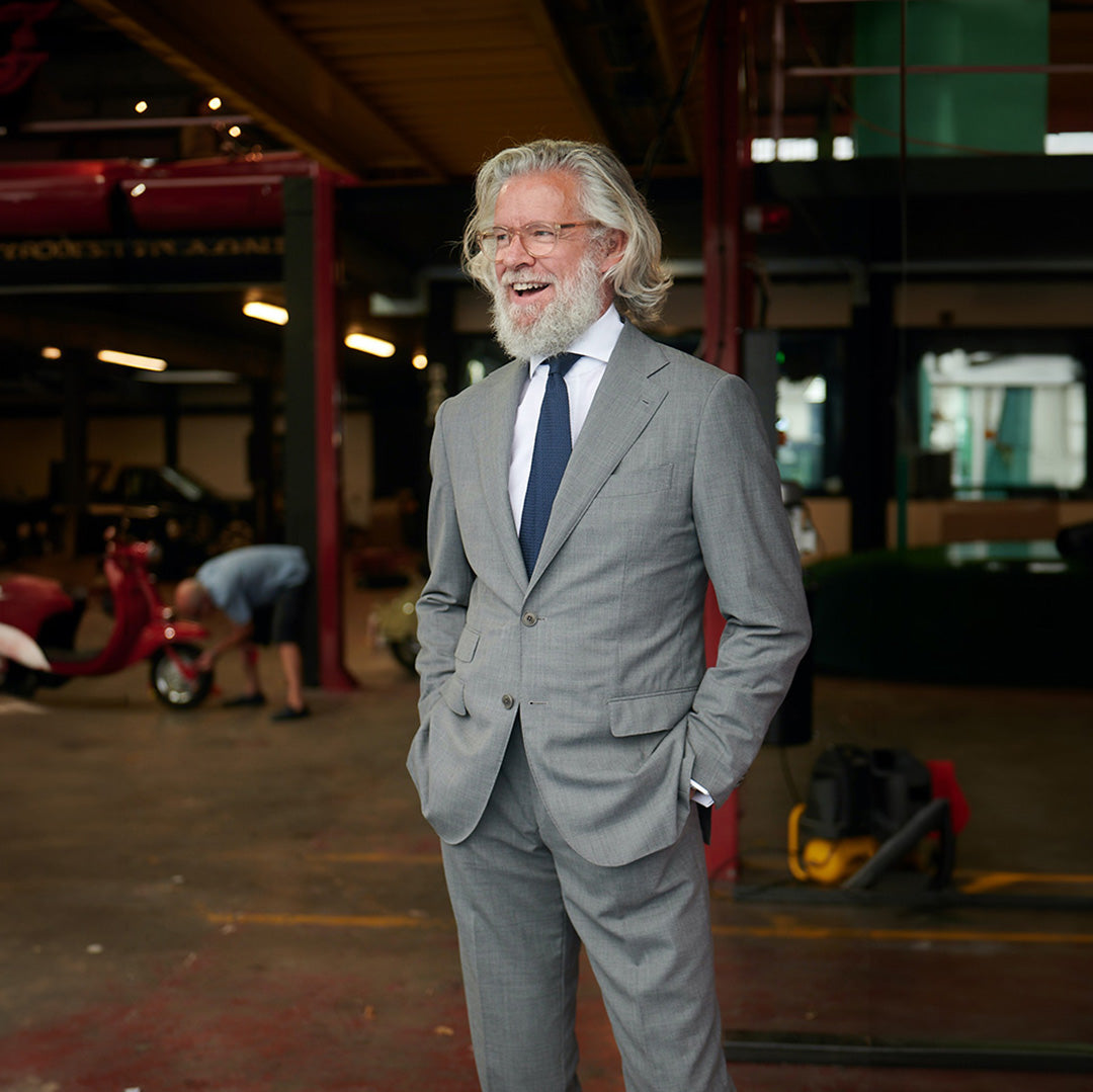 The Hopsack Blazer is one of David's staple wardrobe items. It is a cloth that can be worn throught the year.